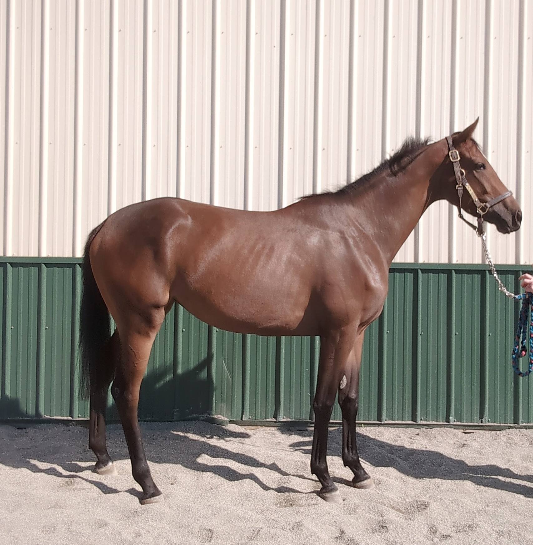"Ruby" is currently unnamed with the Jockey Club. Her sire is the great Big Brown. Ruby is good for grooming but does not like her nose cleaned. She stood with no halter for her hair trim and walked outside with nice ground manners. Her baby brain made it hard to focus and stand still for more than a few seconds. She is sensitive to the flys but didn't mind the noises coming from the arena while others were playing. With time, Ruby is going to make a very brave partner! She is still growing and needs to mentally mature. Due to her age she is looking for an experienced adopter willing to give Ruby time to grow and mature before working too hard.